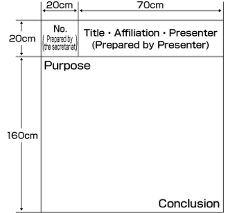 We suggest that text and diagrams be arranged appropriately so that the poster is legible from a distance. Please state clearly the presentation’s objective, methods, results, and conclusion. The objective should be positioned at the upper left and the conclusion at the lower right of the poster. |
