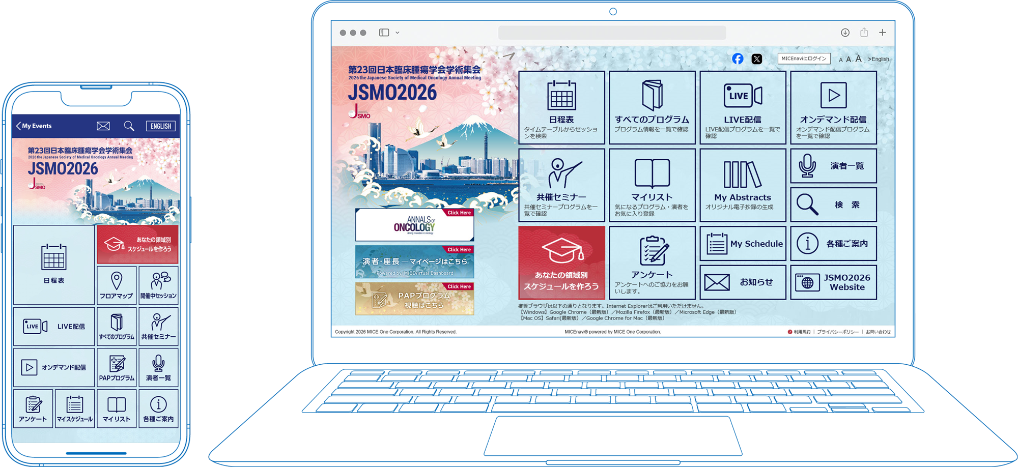 第23回日本臨床腫瘍学会学術集会では、演題検索やスケジュール登録ができる電子抄録サービス「MICEnavi」をご利用いただけます。