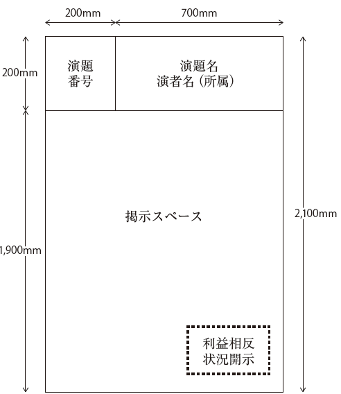 発表の際に利益相反自己申告に関する情報を講演・口演の場合は、スライドの最初に、ポスター発表の場合は、ポスター内容の最後の部分に提示ください。