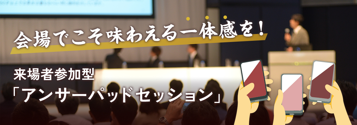 アンサーパッドは、JSPEN公式アプリからどなたでも気軽に参加でき、セッション中に表示される質問に回答したり、投票したりする機能です。