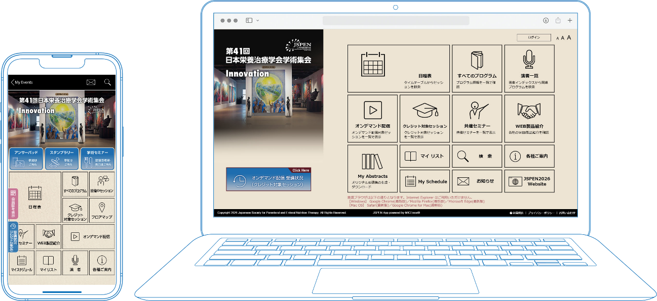 第41回日本栄養治療学会学術集会(JSPEN2026)では、日本栄養治療学会公式アプリ「JSPEN」から演題検索やスケジュール登録ができる電子抄録サービスをご利用いただけます。