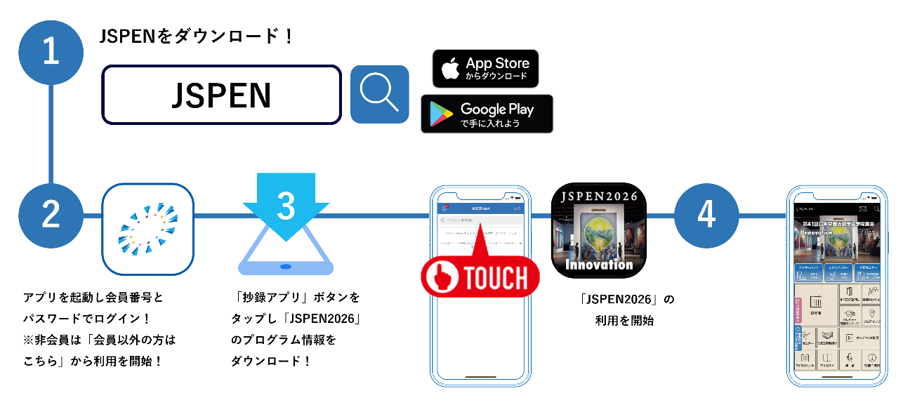 パスワードはJSPEN2026 参加登録後、参加登録マイページよりご確認いただけます。