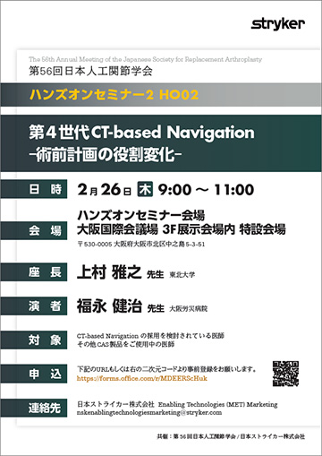 | お問合せ先 | 日本ストライカー株式会社 Enabling Technologies (MET) Marketing メールアドレス:nskenablingtechnologiesmarketing@stryker.com |