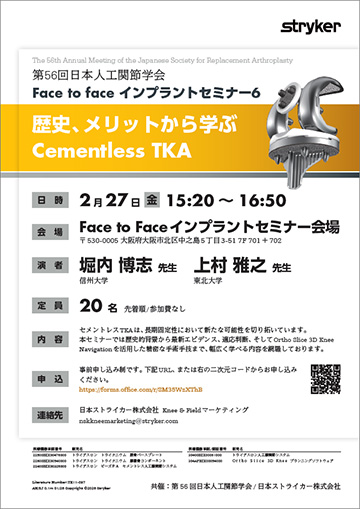 | お問合せ先 | 日本ストライカー株式会社 担当:Knee & Fieldマーケティング 電話番号:070-3543-5412 メールアドレス:nskkneemarketing@stryker.com |