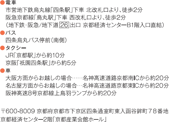 〒600-8009 京都府京都市下京区四条通室町函谷鉾町78番地 京都経済センター2階